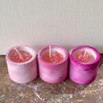 we designed three hand-painted gel candles that softly transition through shades of pink.