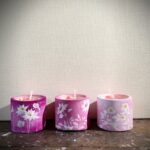 骨壷やお花の色合いに合わせて、ピンクのグラデーションになるようにキャンドルを3つ制作しました。