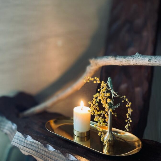 贅沢な光沢が美しいろうそく立てと一輪挿し、トレイのセットです。ステンレス鋼と真鍮で作られた上質なアイテムは、炎が揺らめく際に光を反射し、高級感を醸し出します。どんなインテリアにも溶け込み、上質な雰囲気を演出してくれます。
