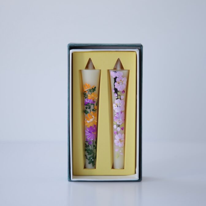大切な方への想いを込め、ひと筆ひと筆丁寧に絵付けをした和ろうそくをお届けしている【きゃんどる らっそくや】です。季節の花々やペットなどオリジナル絵柄のオーダーも承っており、法事などのお供え用を中心に、新築祝い・誕生日、結婚式など、贈り物やお土産としてもご利用いただいております。和ろうそくの美しさを、是非感じてください。